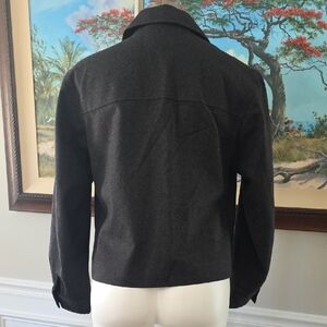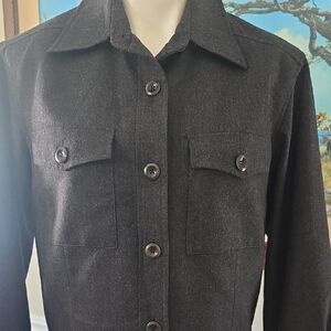 Structured utility-style jacket with button-front closure. Two flap chest pockets and clean lines. Collared neckline for a classic look. Versatile layering piece for everyday wear.