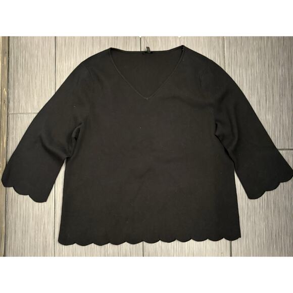 Talbots Black V-Neck Sweater Size 3X NWT Scalloped Trim Cotton Blend