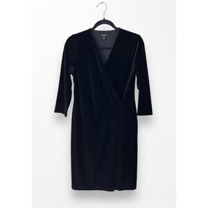 Stretchy black velour cocktail wrap dress from Talbot’s in women’s size Medium petite. 90% polyester/10% spandex. Measurements in photos. Excellent pre-owned condition.