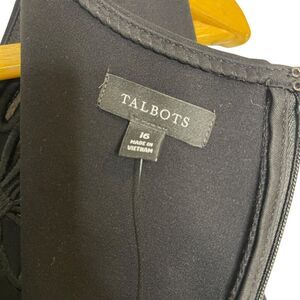 Talbots Black Velvet Cut Out Embroidered Bow Sleeveless Dress Size 16 NWT