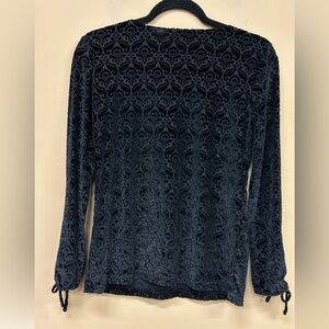 Talbots Black Velvet Damask Burnout Blouse Whimsigoth Long Sleeve Sz Petite NWT