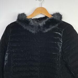 Talbots Black Velvet Down Quilted Puffer Jacket Coat Faux Fur Collar 16P 16 P
