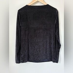 Talbots Black Velvet Houndstooth Plaid Drape Neck Blouse Size M New with Tags