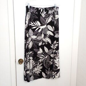 Talbots Black & White Botanical Print Jersey Knit Maxi Skirt