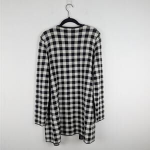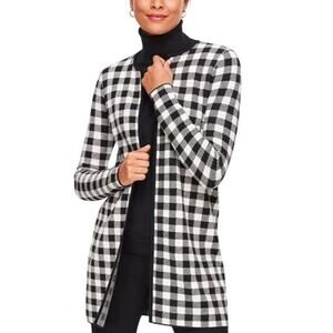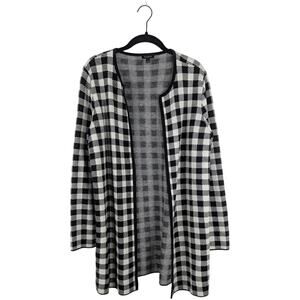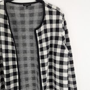 Talbots Black White Buffalo Check Plaid Wool Blend Sweater Jacket Cardigan Sz L