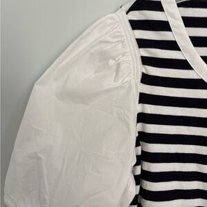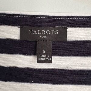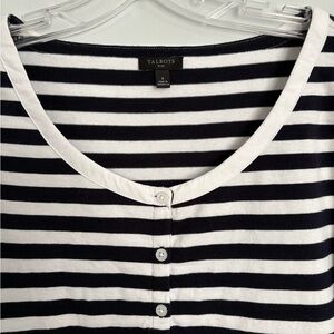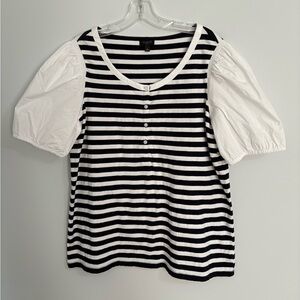 Talbots Black White Cotton Striped Short Puff Sleeve Scoop Neck Chic Blouse 1X