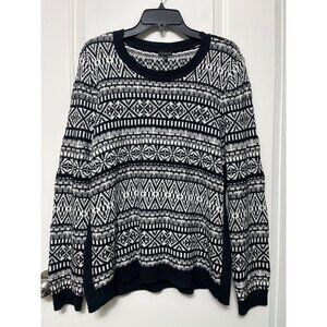 Talbots Black & White Fair Isle Crewneck Cotton/Wool Blend Sweater Size XL