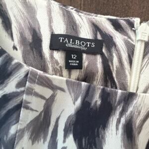 Talbots Black White Feather Design Sleeveless Lined Cotton Dress Women's Size 12