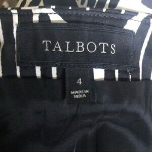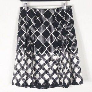 Talbots Black & White Geometric Pleated Lined Skirt Size 4 NWT