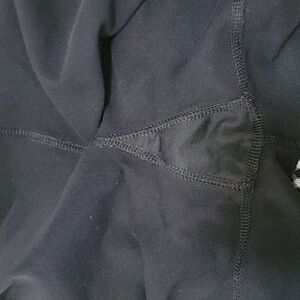 95% polyester, 5% spandex. lining is 89% cotton, 11% spandex.