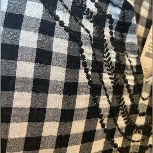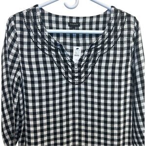 Talbots Black & White Gingham Dress Long Sleeve Embroidered Neckline Size XS NWT