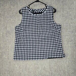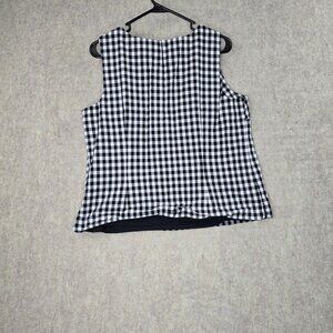 Talbots Black & White Gingham Sleeveless Top With Floral Accents Size 16P