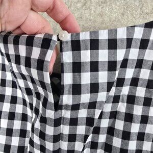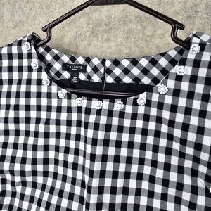 This Talbots gingham top offers a classic black and white checkered pattern, enhanced with the delicate touch of floral accents along the neckline. Crafted for petites, this sleeveless design ensures comfort and style, perfect for layering or wearing alone. Its versatile design suits various occasions, while the polyester and cotton blend fabric ensures easy maintenance.