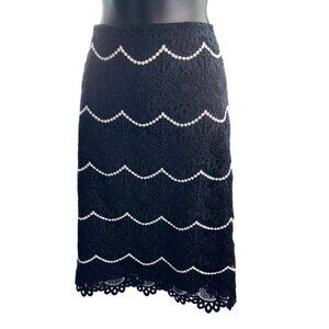 Talbots Black & White Lace Overlay Scalloped Hem Back Zip Pencil Skirt, Size 10