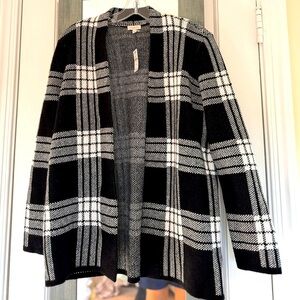Talbots Black &White Open Front Cardigan Officecore Career