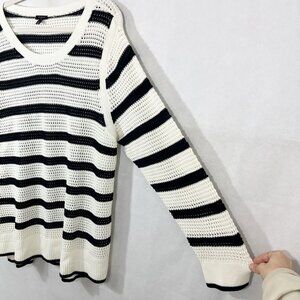 Talbots Black & White Open Knit Striped Long Sleeve Sweater Top Beach Size 2X