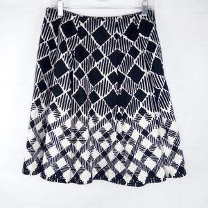 Talbots Black & White Pattern Pleated Cotton A-Line Skirt Size 16W Side Zip