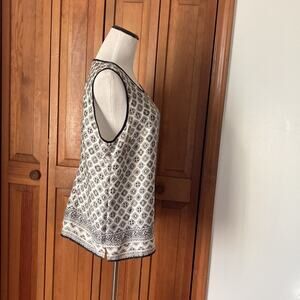 Talbots Black & White Print Semi Sheer Shell, Size LP