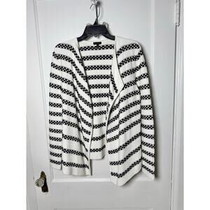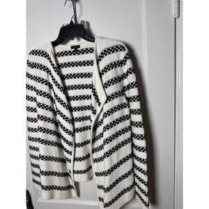 Talbots Black White Striped Chunky Rolled Neck Open Cardigan Sweater Small Chic