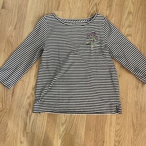 Talbots Black & White Striped Tshirt Beaded Embroidered Flowers Women's Large