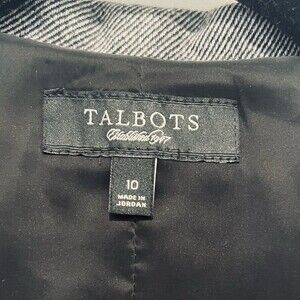 Talbots Black & White Striped Wool Blend Jackie Fit Pleated Peacoat/Jacket Sz 10