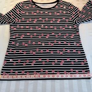 Talbots Black & White Sz LP Striped Top w/ Red Peppermint Candies/SequinsPattern