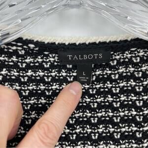 Talbots Black White Tipped Tweed Sweater Blazer Size Large Boucle Quiet Luxury