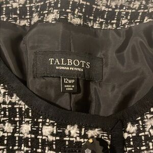 Talbots Petite Black & White Tweed Wool Suit Jacket & Skirt Jacket 12WP & Skirt 16WP