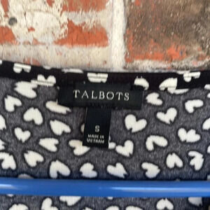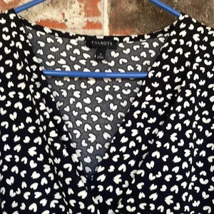 Talbots Black White Whimsical Hearts Faux Wrap Dress