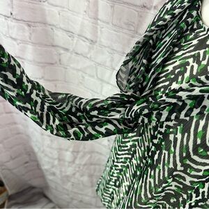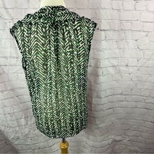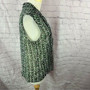 Talbots Black White green Tie Front sleeveless Blouse sz 12 office classic