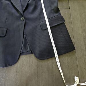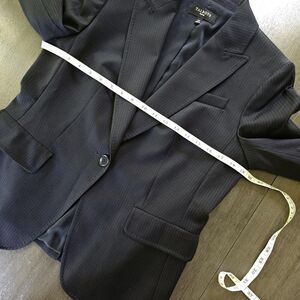 Craft a sharp, professional look with the Talbots Black Wool Blend Pinstripe Blazer. Size 12 petite jacket is tailored to flatter and perfect for career settings. The timeless pinstripe pattern in black offers versatility for both office and evening wear.
