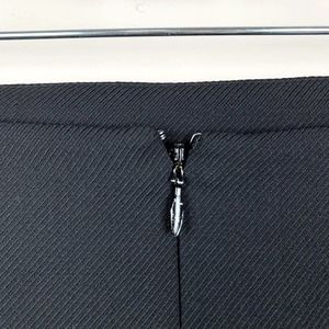 Talbots straight pencil skirt in women’s size 10. Black 95% wool 5% spandex. 100% polyester lining. Dry clean. Lined. Zipper at the back. The back hem is slightly longer and there is pleating at the hem. Fabric woven in Italy. There are scratches on the zipper pull and some faint writing on the tag. Please see pictures.