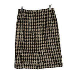Talbots Black and Brown Houndstooth Wool Blend Skirt Suit, Size 4p, Pre-owned