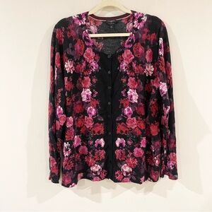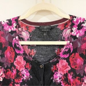 Talbots Black and Pink Floral Merino Wool Cardigan Sweater women’s size 3X