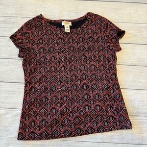 Talbots Black and Red Geometric Short Sleeve Top