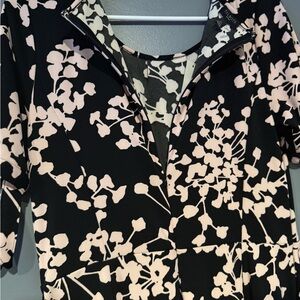 This elegant dress by Talbots features a classic black and white floral print, perfect for a wedding guest or cocktail event. The scoop neckline and 3/4 flutter sleeves add a touch of sophistication, while the A-line silhouette offers a flattering fit. Ideal for making a stylish statement at any formal occasion.
