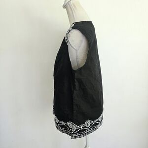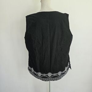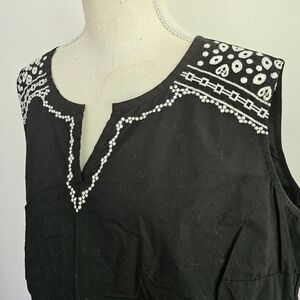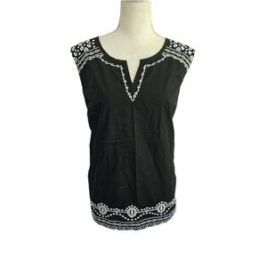 Talbots black tank top with white embroidery and notched v neckline. Made of lightweight cotton fabric, this top is perfect for these hot summer months!