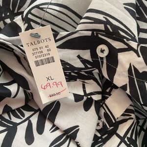 Talbots Black and White Leaf Pattern Shirt Size XL
