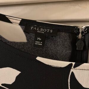 This elegant black and white dress features a stylish leaf print, perfect for any occasion. Its classic design offers a sophisticated look.