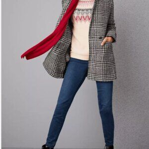 Discover the timeless appeal of this long wool blend jacket from Talbots, styled in a classic black and white glen plaid pattern. Designed with a modern, longer length, this essential piece effortlessly combines tradition with contemporary fashion.