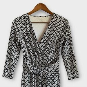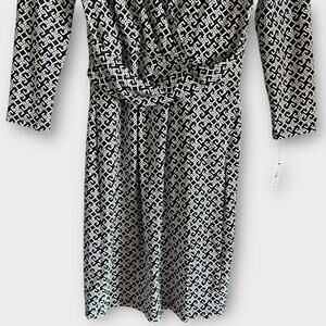 Talbots Black and White Patterned Faux Wrap Dress XS New