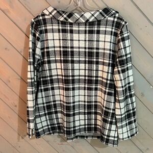Talbots Black and White Plaid Cowl Neck Tunic Top with Zipper Pockets - Medium