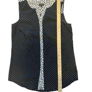 Talbots Black and White Polka Dot Floral Sleeveless Blouse Sz S