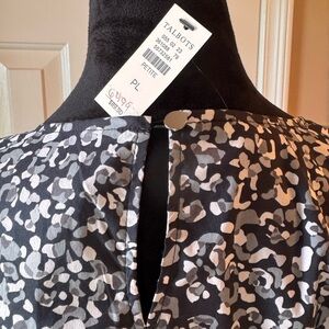 Talbots Black and White Print Blouse with 3/4 length sleeves NWT