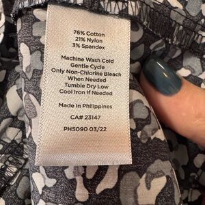Talbots black, gray and white print blouse. Ideal for versatile styling. Comfortable and elegant.