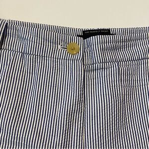 Stylish black and white striped shorts. Perfect for casual outings. Comfortable fit.