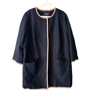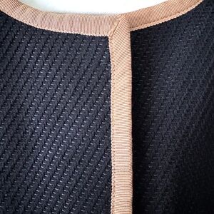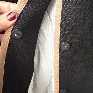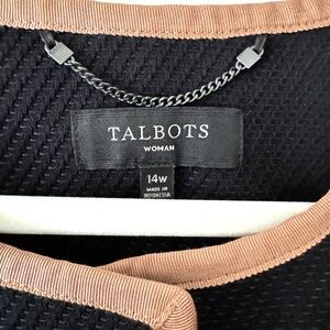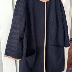 Talbots Black long coat with tan ribbon trim