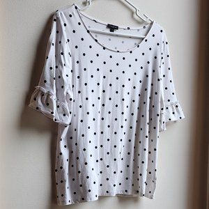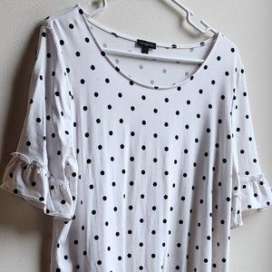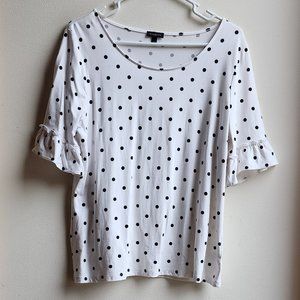 Talbots Black/White Scoop Neck Polka Dot Ruffled Jersey Size Large