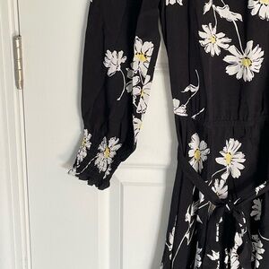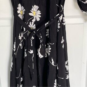 Talbots Black/Yellow Vintage Daisy Fit & Flare Midi Dress Size 10 Petite