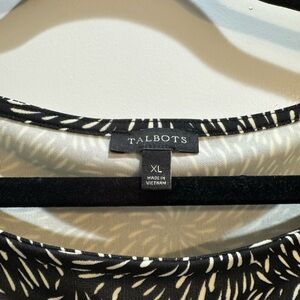 Talbots Black/white Floral Tunic XL Boatneck 3/4 Sleeves Armpit To Armpit 24” length 29” 95% polyester 5% spandex - 2725